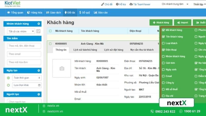 - KiotViet giúp tổ chức và quản lý chi tiết thông tin khách hàng. Từ số điện thoại đến lịch sử mua hàng.