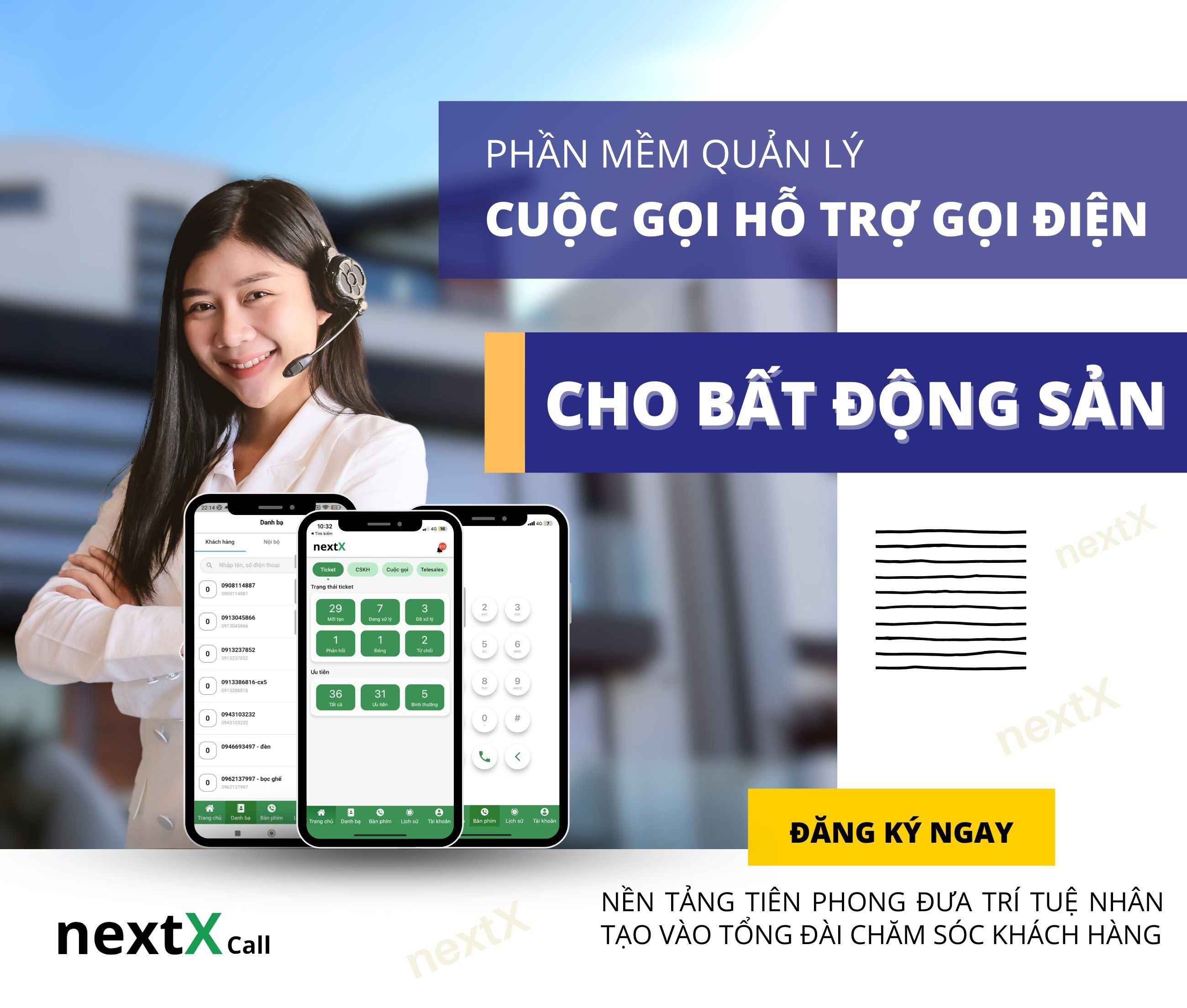 NextX Call là phần mềm quản lý cuộc gọi hỗ trợ gọi điện được thiết kế riêng biệt, nhằm hỗ trợ đội ngũ telesales quản lý, theo dõi và tối ưu hóa các cuộc gọi một cách hiệu quả. Đặc biệt, phần mềm này phù hợp với những doanh nghiệp bất động sản có yêu cầu cao trong việc chăm sóc khách hàng và quản lý dữ liệu phức tạp. NextX Call tích hợp công nghệ AI hiện đại, cung cấp các tính năng vượt trội như gợi ý phân tích cảm xúc khách hàng và báo cáo thời gian thực. Với hơn một thập kỷ kinh nghiệm phát triển phần mềm quản lý cuộc gọi hỗ trợ gọi điện telesales, NextX Call không chỉ đáp ứng tốt yêu cầu vận hành mà còn mang lại giá trị lâu dài cho ngành bất dộng sản.