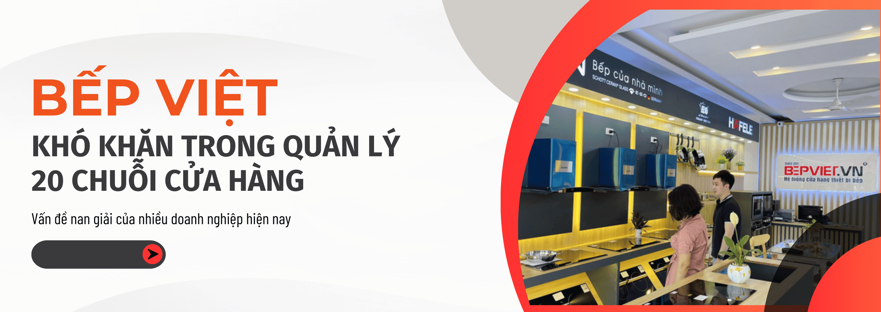 Với hệ thống 20 cửa hàng trên toàn quốc, Bếp Việt đối mặt với quy trình quản lý phức tạp. Bao gồm sự tham gia của nhiều bộ phận và đơn vị như bán hàng, chăm sóc khách hàng, sửa chữa, kế toán, vận chuyển,… Do đó để duy trì hoạt động trơn tru và hiệu quả đòi hỏi Bếp Việt phải có một hệ thống quản lý đồng bộ giữa các điểm bán, cho phép ban quản lý dễ dàng theo dõi tiến trình công việc và dữ liệu.
