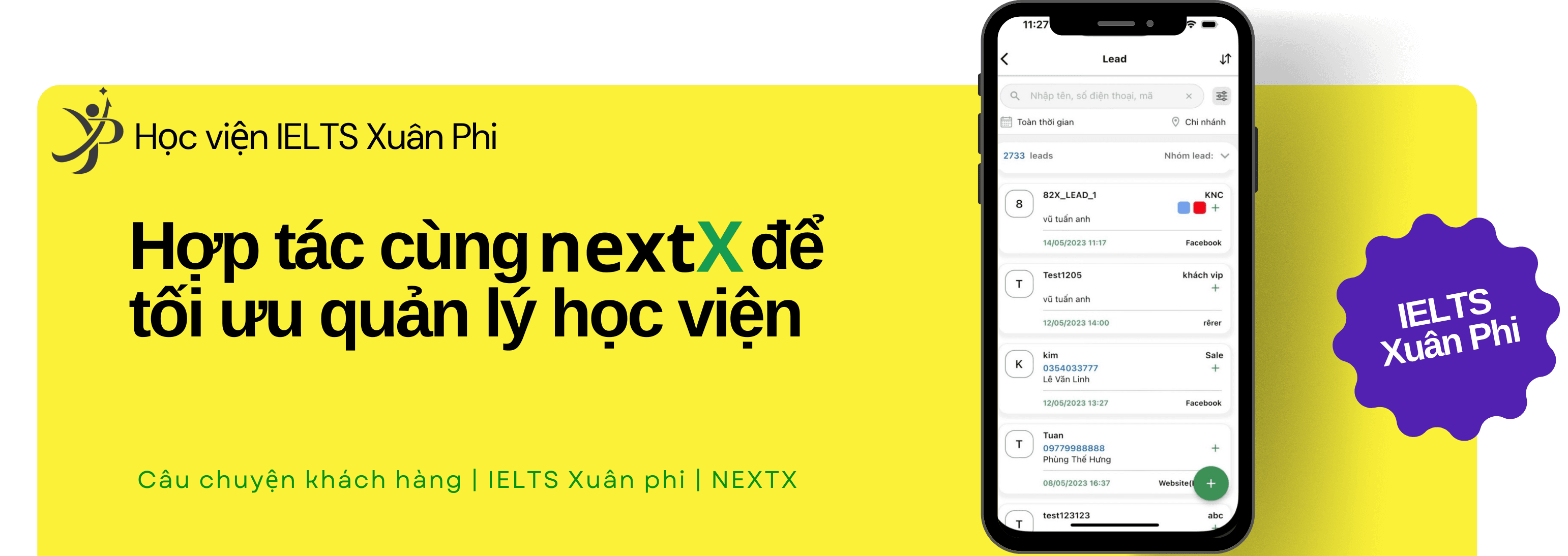 Xuân Phi Ielts là trung tâm NextX triển khai thành công giải pháp số hóa học trực tuyến 1-1 giáo viên học viên. Trong quá trình vận hành trung tâm Xuân Phi đã gặp phải rất nhiều vấn đề trong quản lý khóa học, quản lý học sinh, quản lý giáo viên.