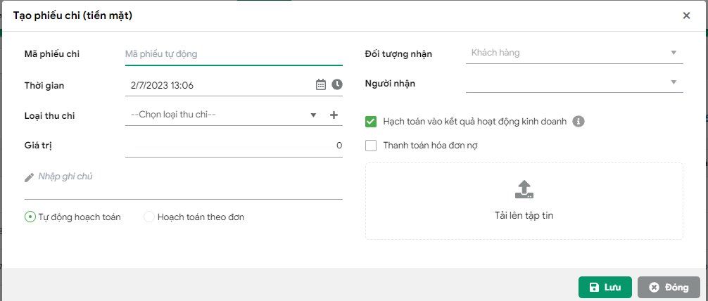 • Thêm mới phiếu chi dễ dàng