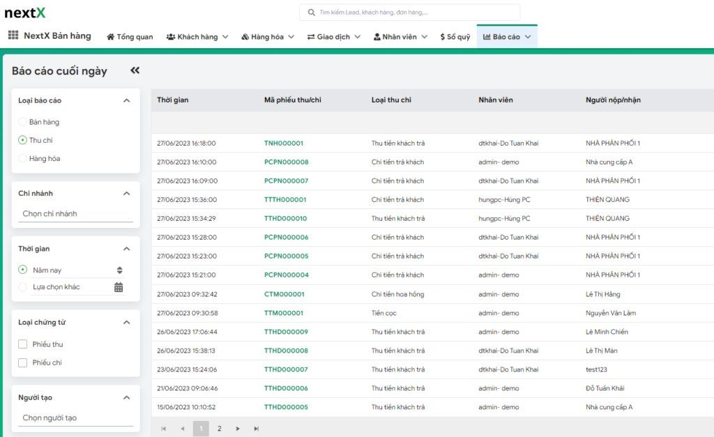Hơn 20 báo cáo tài chính trong ứng dụng NextX tài chính bao gồm: Báo cáo kết quả hoạt động kinh doanh, luân chuyển tiền tệ, báo cáo cuối ngày theo các dạng khác nhau như: báo cáo dạng danh sách, báo cáo dạng biểu đồ...