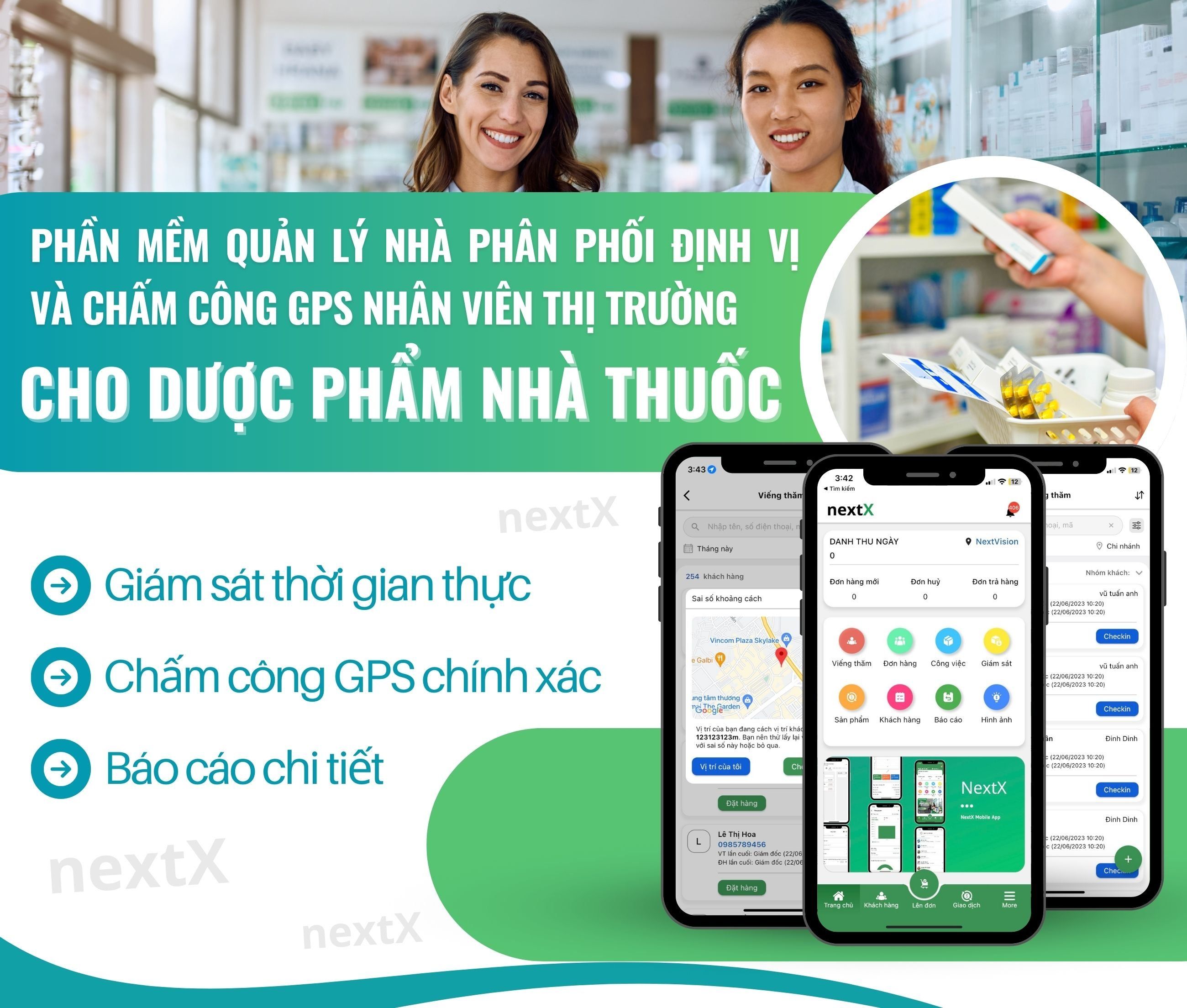 Trong lĩnh vực dược phẩm, nhà thuốc và y tế, việc quản lý nhân viên thị trường và nhà phân phối luôn là bài toán khó đối với nhiều doanh nghiệp. Đội ngũ nhân viên này thường phải di chuyển nhiều địa điểm trong ngày, gặp gỡ đối tác, nhà thuốc và khách hàng tiềm năng. Phần mềm quản lý nhà phân phối tích hợp định vị và chấm công GPS nhân viên thị trường cho dược phẩm, nhà thuốc, y tế đã trở thành giải pháp toàn diện, giúp doanh nghiệp theo dõi chính xác vị trí làm việc của nhân viên, tối ưu hóa lộ trình và quản lý hiệu quả giờ làm việc. Dưới đây NextX sẽ giới thiệu TOP 6 phần mềm tốt nhất trong lĩnh vực này để giúp bạn lựa chọn công cụ phù hợp.