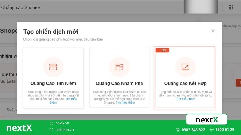 - Bước 1: Lựa chọn hình thức “Quảng cáo tổng hợp”