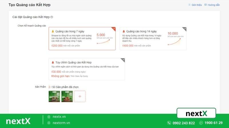 - Bước 2: Lựa chọn kế hoạch quảng cáo phù hợp trong 7 - 14 ngày. Hoặc Tùy chọn quảng cáo dựa theo ngân sách.